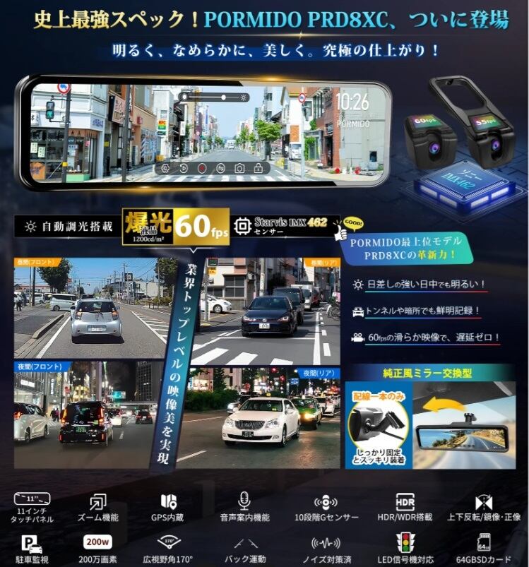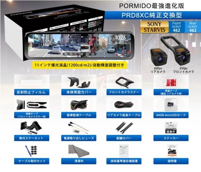 PRD8XC 前後カメラ60fps・純正交換型ドライブレコーダー