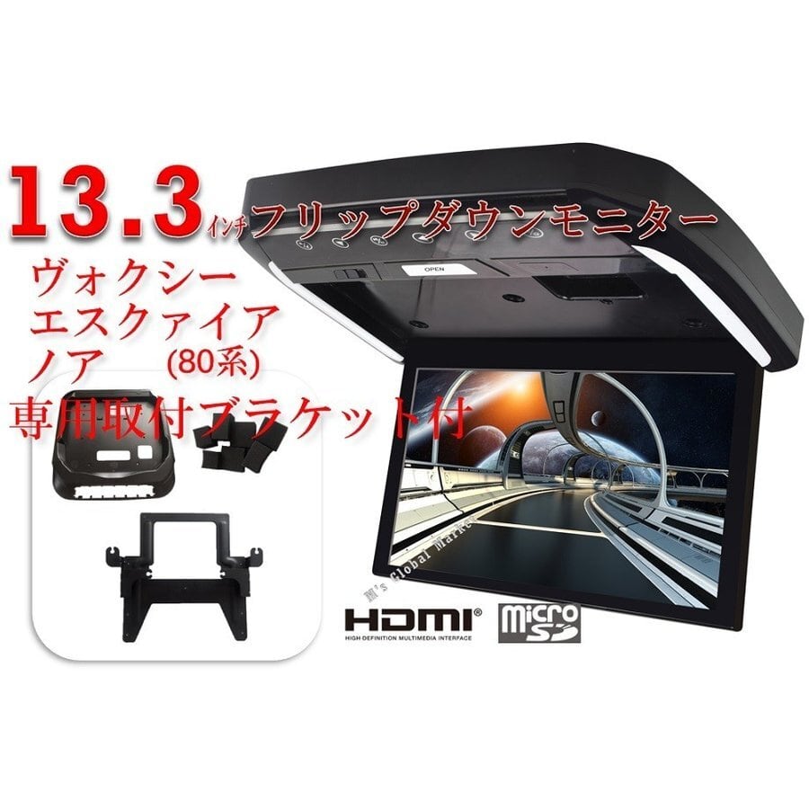 フリップダウンモニター ヴォクシー(80系) 煌 ノア(80系) エスクァイア 専用 液晶 13.3インチ + 取付キット HDMI 動画再生 LED 高画質 WXGA
